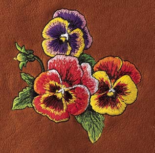 Scroll down to see all Embroidery Designs Fireweed - G558 Blooming Pansies - G803 Wild Flowers - G086 Rose Lace - G554 Sunflower - G810 Forget-Me-Nots - G816 Pine Cone - G807 Tree Grove - G806 Mare & Foal - G234 Three Running Horses - G025 Single Running Horse - G056 Windy Day - G612 Morning Run - G800 Cardinal - G051 Chickadee - G626 Gold Finch - G090 Blue Bird - G808 Hummingbird - G001 Rufous Hummer - G812 Eagle Landing - G053 Eagle Head - G620 Mallard - G018 Loon - G614 Dragonfly - G616 Monarch - G618 Wolf Smile - G622 Wolf Watch - G145 Deer Head - G801 Elk Head - G083 Elk Bugle - G540 Feathers - G099 Kokopelli - G232 Feather - G100 Dream Catcher - G802 Geometric Rug - G226 Fetish Bear - G606 Standing Buffalo - G062 White Buffalo - G805 Polar Cuddle - G108 Black Bear - G200 Grizzly w/Fish - G060 Moose - G815 Sea Turtle - G044 Jumping Dolphin - G007 "Pink Ribbon"
