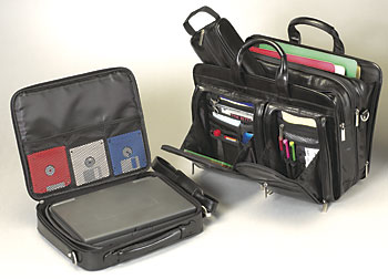 (24) Compartments, pockets and slots = versatile & portable office: Convenient outside front "drawbridge" zippered organizational pockets hold business and/or credit cards, pens, phone cards, cell phone, keys, discs
