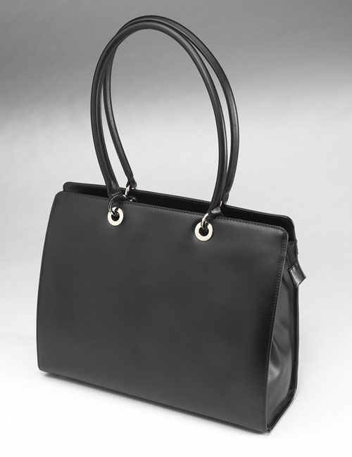 Interior houses full organizer to hold PDA, cell or glasses, cards, pens, lipstick/makeup, flapover pocket and extra room for notebooks, papers, lunch